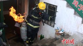 实拍消防官兵从火场徒手移出喷火煤气罐