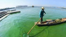 绍兴瓜渚湖湖水绿如“油漆”