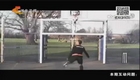 男子脚踢足球“投篮” 各种花样百发百中