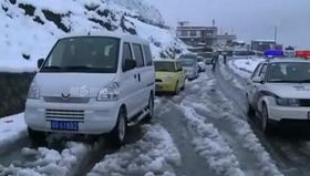 四川康定九月飘雪 道路结冰车辆滞留