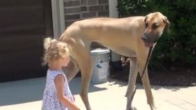 聪明宠物狗狗给主人做按摩