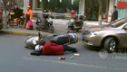男子模拟倒地无人理