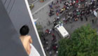 实拍裸女跳楼被救 引数百民众围观拍照