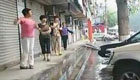 实拍大妈下雨天站屋檐下跳广场舞