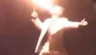 杂技演员表演喷火时打嗝 脸部着火吓坏观众