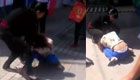 实拍男子护小三当街暴打妻子女儿