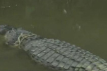 美国洪水来袭 圈养短吻鳄趁乱出逃