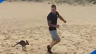 袋鼠蹦蹦跳跳跟主人逛街