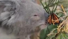 考拉与蝴蝶嬉戏“亲吻”