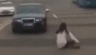 女司机下车忘拉手刹被带倒