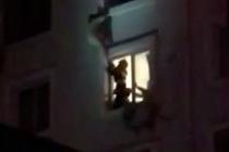 消防员冒死接坠楼女