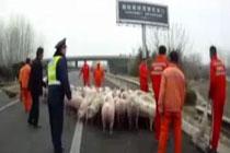 46头猪掉落高速 民警临时当“猪倌”
