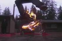 极限高手雨中玩起火焰滑板