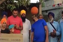 小伙嘴咬牙刷旋转篮球