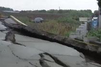 上海一停车场地面暴雨中开裂