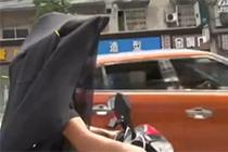 外卖小哥头戴斗笠面纱送餐