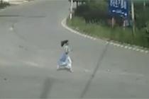 长裙女子踩高跟狂奔救人