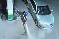 实拍加油站女员工灭火