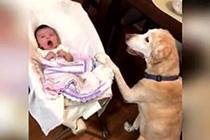 狗狗晃动摇篮哄宝宝入睡