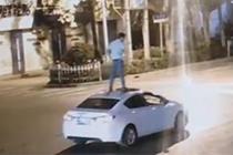 轿车迎面驶来驾驶室无人 司机竟站在车顶