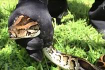 男子在江边放生80斤蛇