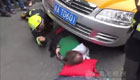杭州一大妈横穿马路被车压住 路人合力搭救