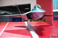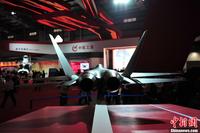 11月13日上午,第九届中国国际航空航天博览会在广东珠海开幕,一架中国先进战斗机概念模型在中航工业展台亮相,从外形上看,与前不久成功试飞的歼31相似,备受关注。中新社发 柯小军 摄
