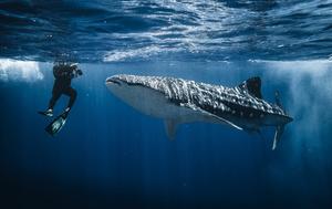 男子与鲸鲨近距离接触同游