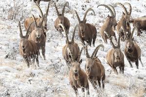 新疆博州北山羊雪中觅食嬉戏