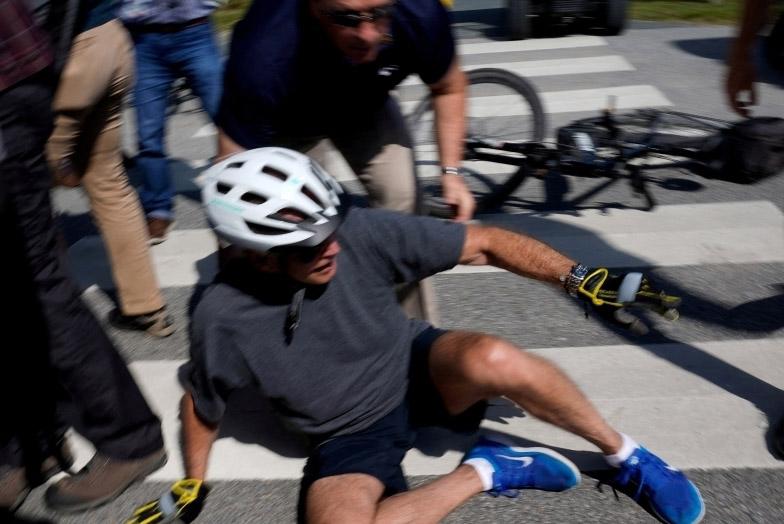 美国总统骑车摔倒